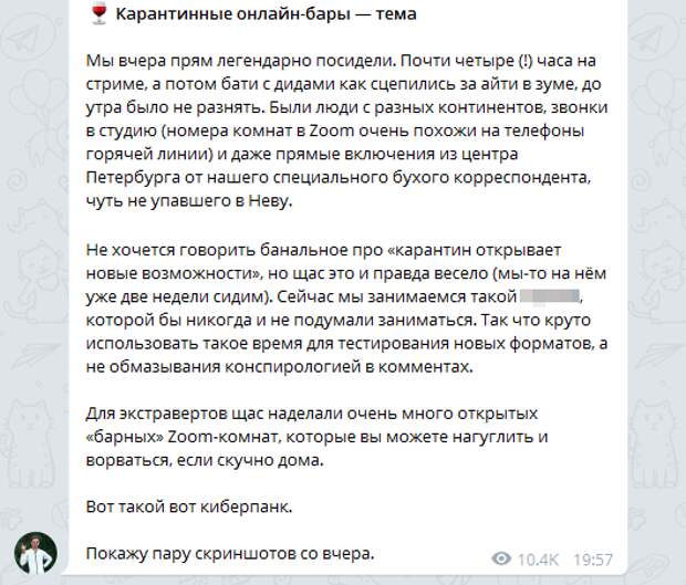 Ну и, как говорится, в каждой шутке есть доля шутки. Еще пара выходных на карантине — и подобные онлайн-встречи вполне могут стать реальностью не только для суровых айтишников, давно поселившихся в Zoom.